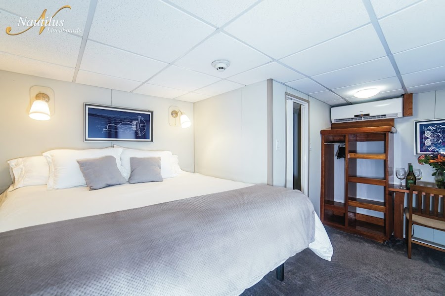 We chose to stay on the Nautilus Explorer, Nautilus’ flagship featuring an all new super-large dive deck and water level platform combined with picture windows around the main salon and separate dining room. The Explorer looks fantastic with her recent stretch to 132 feet in length, new air conditioning and interior updates. Starlink internet is available ($100 per device, per trip) and there is a hot tub on the sun deck to relax after a full day of diving,